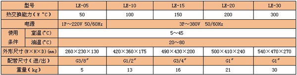 ■LE–□ 型油熱交換器規(guī)格及技術參數(shù)
