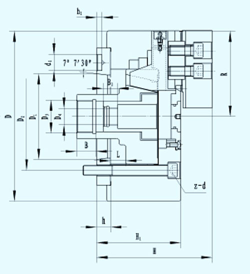 ☆卡盤(pán)有二套獨(dú)立的斜楔驅(qū)動(dòng),2和4爪把工件定心于第一個(gè)軸上。