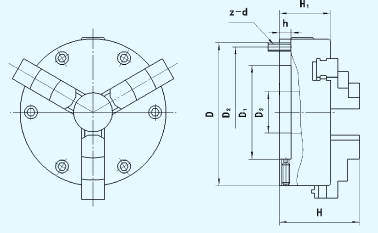 ■特點: ☆短圓柱連接形式。 ☆具有可調精度,能滿足精密加工的需要。 ■Specificity: ☆Short cylindrical center mounting. ☆The centering precision is improved with adjustable structure to meet the needs of precision machining.