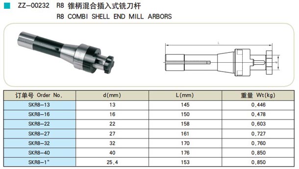 R8錐柄混合插入式銑刀桿
