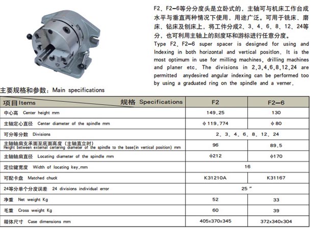 F2、F2-6型立臥等分分度頭
