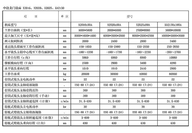 中段龍門銑床 X2016、X2020、X2025、XA2130