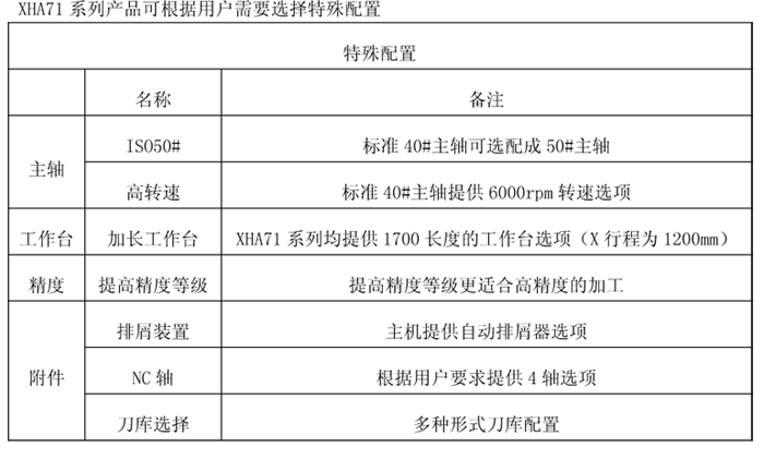 XHA71系列立式加工中心能夠保證低速區(qū)的大扭矩和高速區(qū)的大功率的協(xié)調(diào),主軸剛性高,保證主軸加工時的平穩(wěn)性和強力切削實現(xiàn)零件的高表面光潔度。