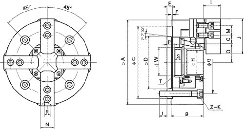 K58系列四爪大通孔楔式動(dòng)力卡盤